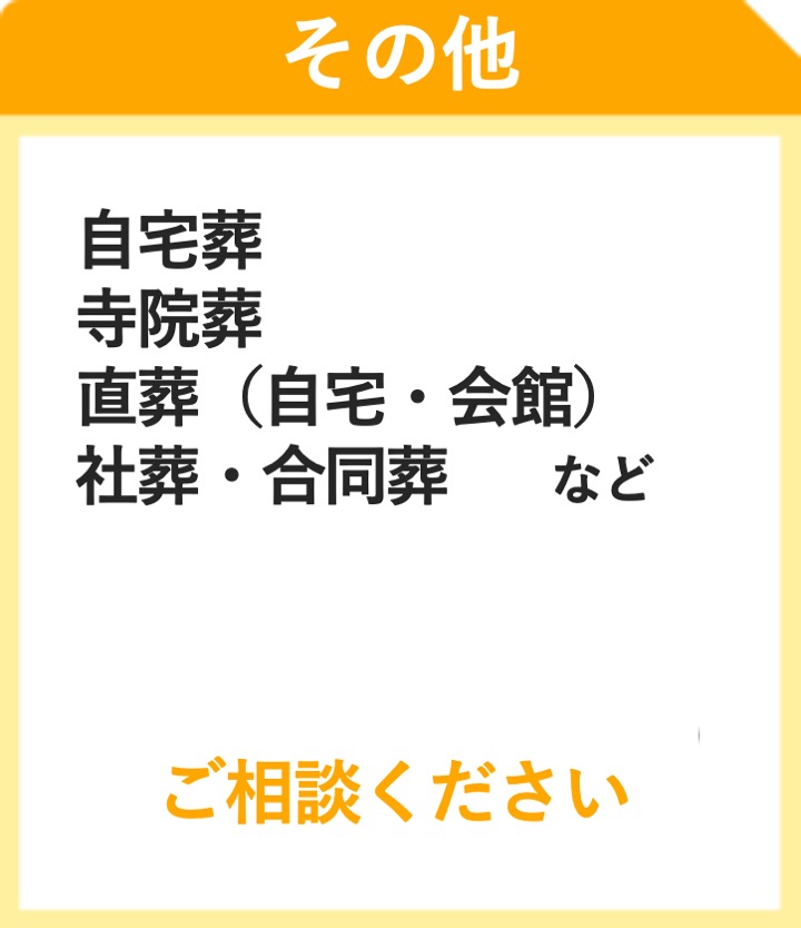 故人が生前お住まいになれていたご自宅など、故人の安らげる場所で執り行う葬儀です。時間に左右されたりすることなく、ゆっくりと供養・お別れができます。規模が大きくなりにくい分、お手伝いの方を頼まずに当社スタッフや、ご親族の方のみで葬儀を施工することが可能です。